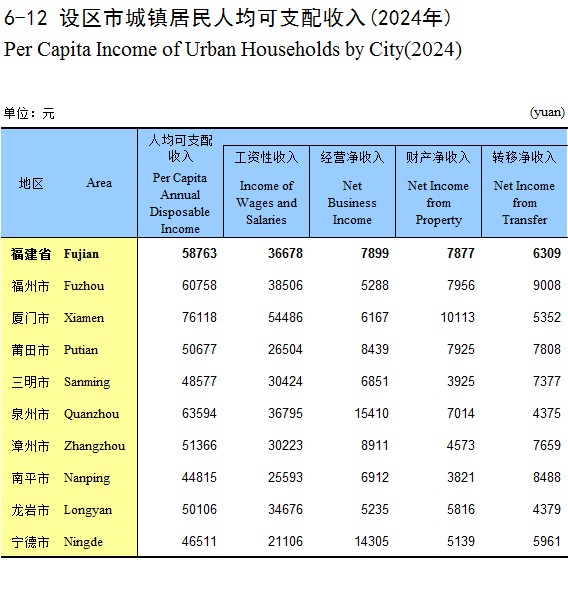 6-12 设区市城镇居民人均可支配收入(2024年)