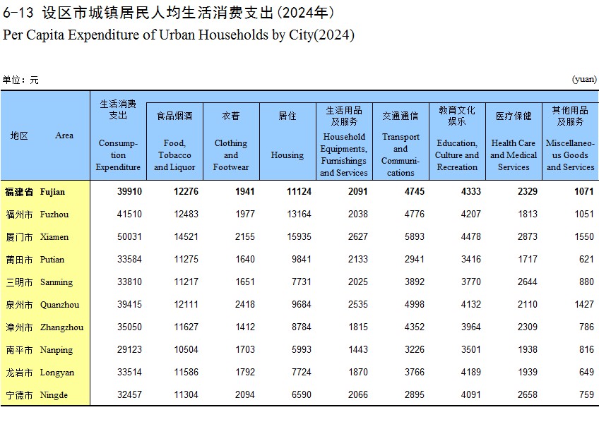 6-13 设区市城镇居民人均生活消费支出(2024年)