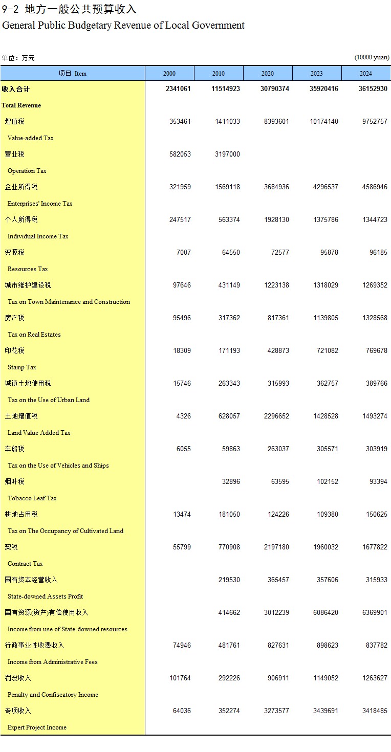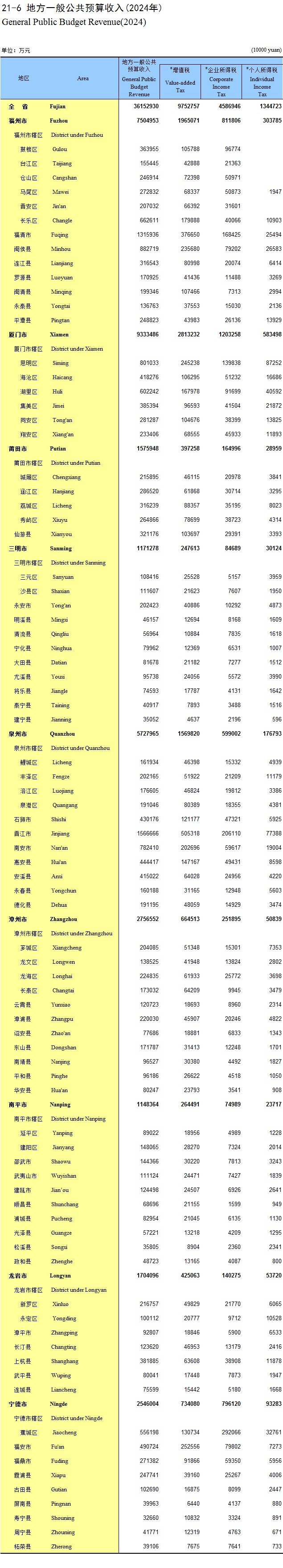 21-6 地方一般公共预算收入(2024年)