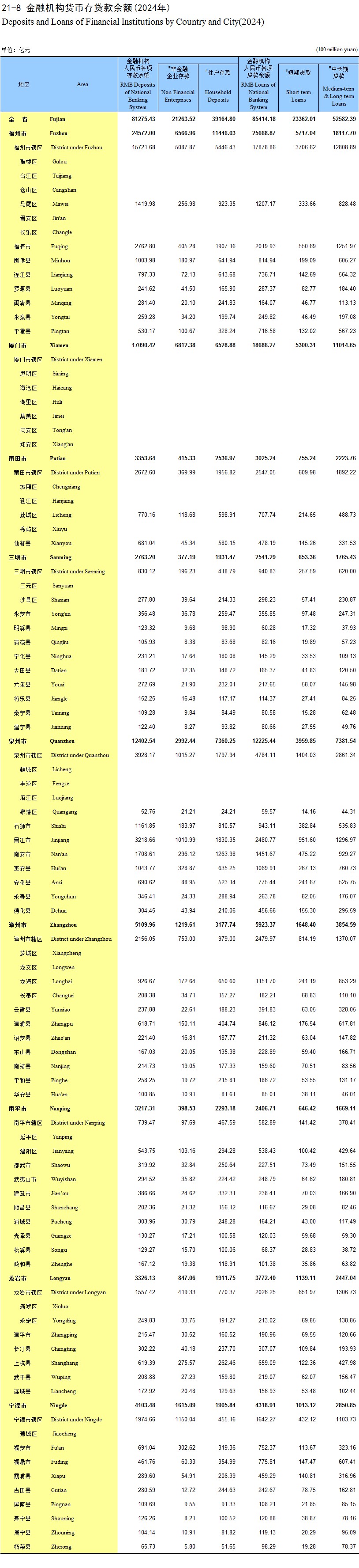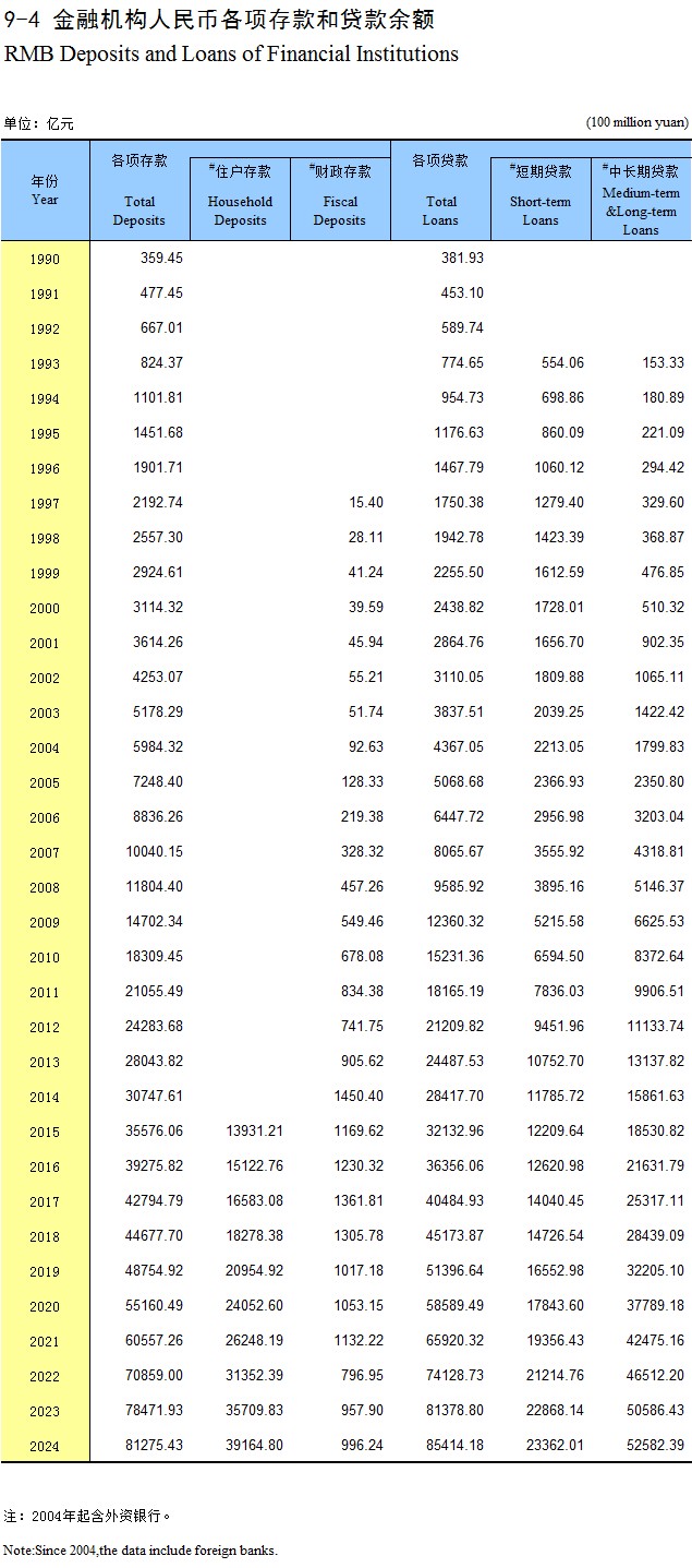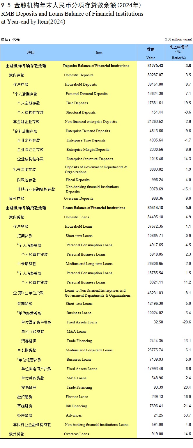 21-8 金融机构货币存贷款余额(2024年)