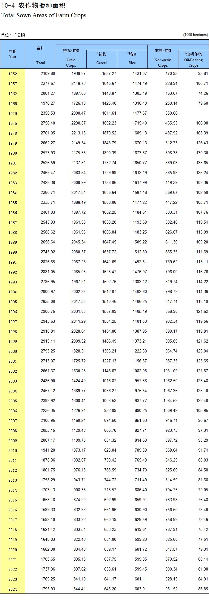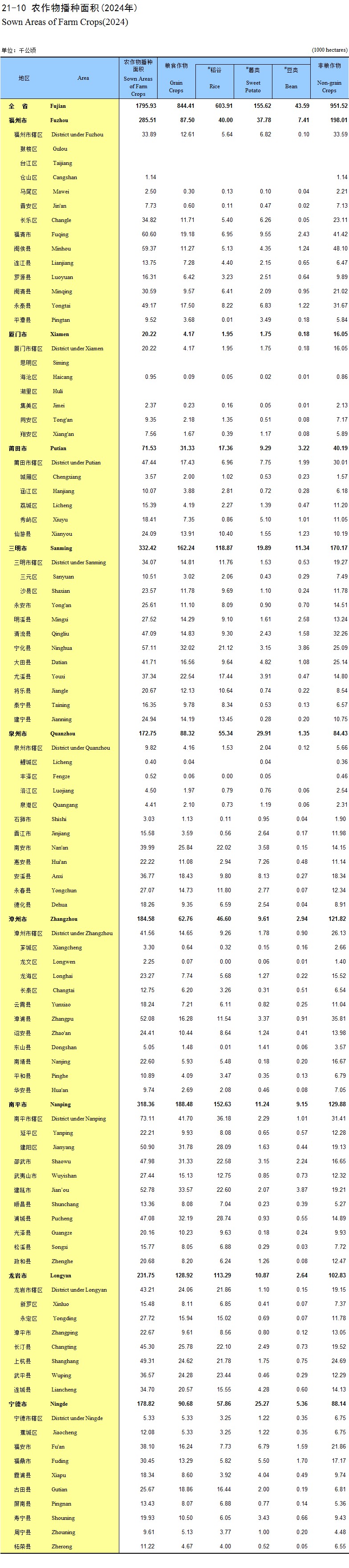 21-10 农作物播种面积(2024年)