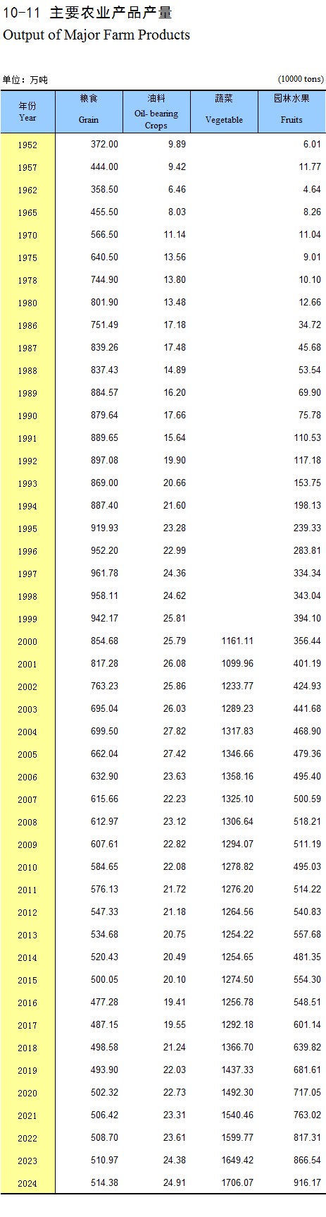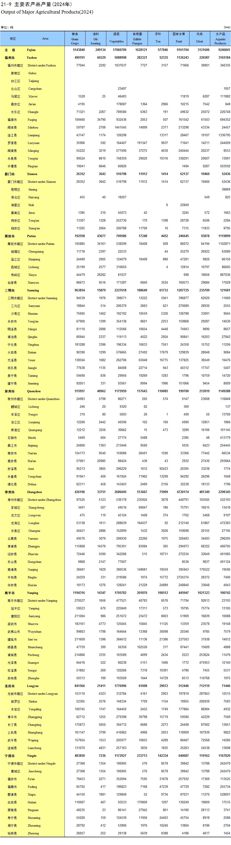 21-9 主要农产品产量(2024年)