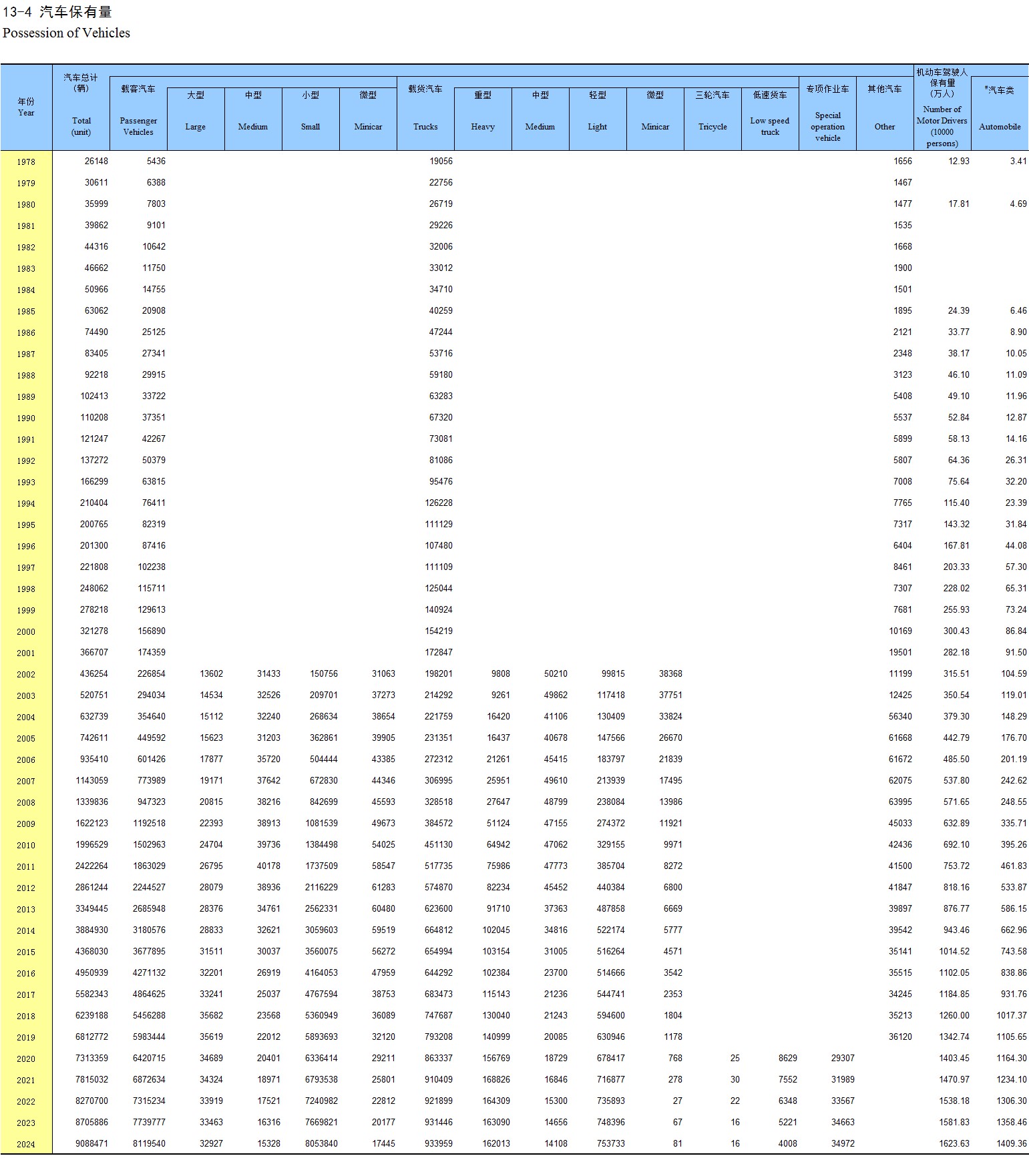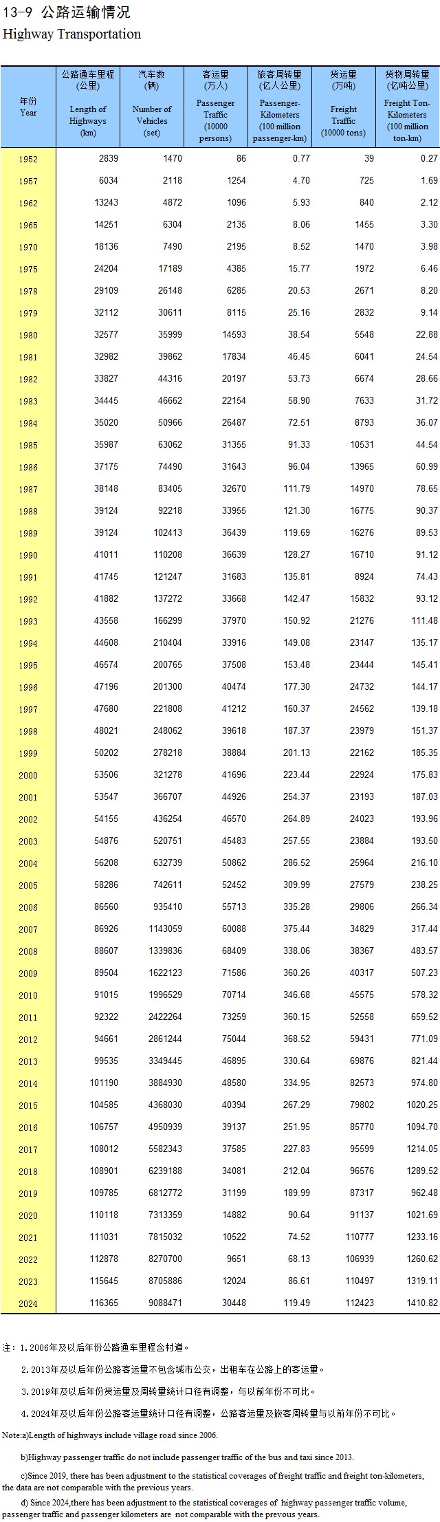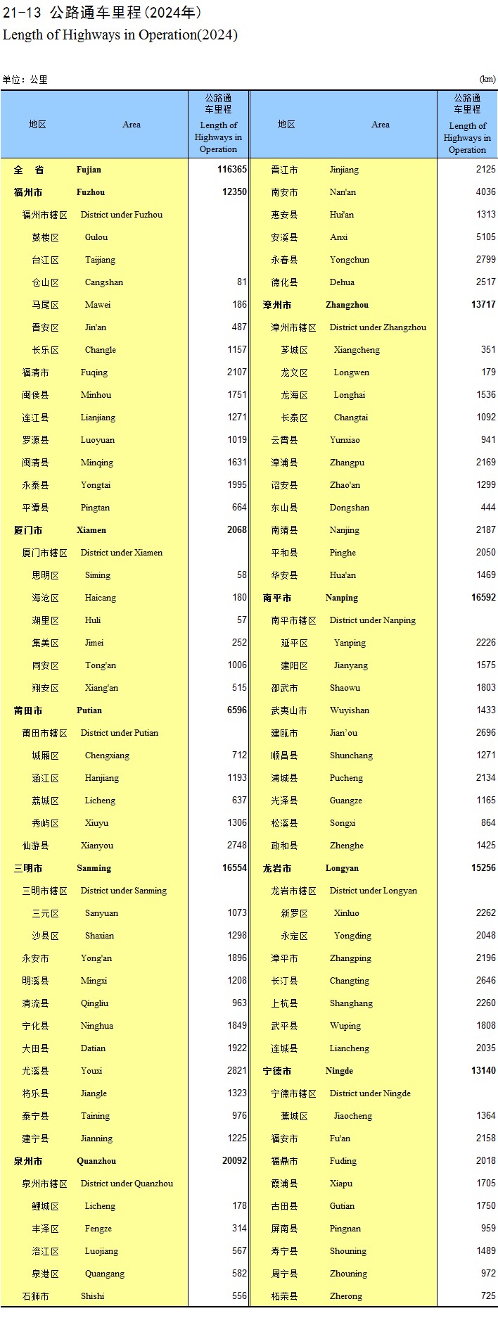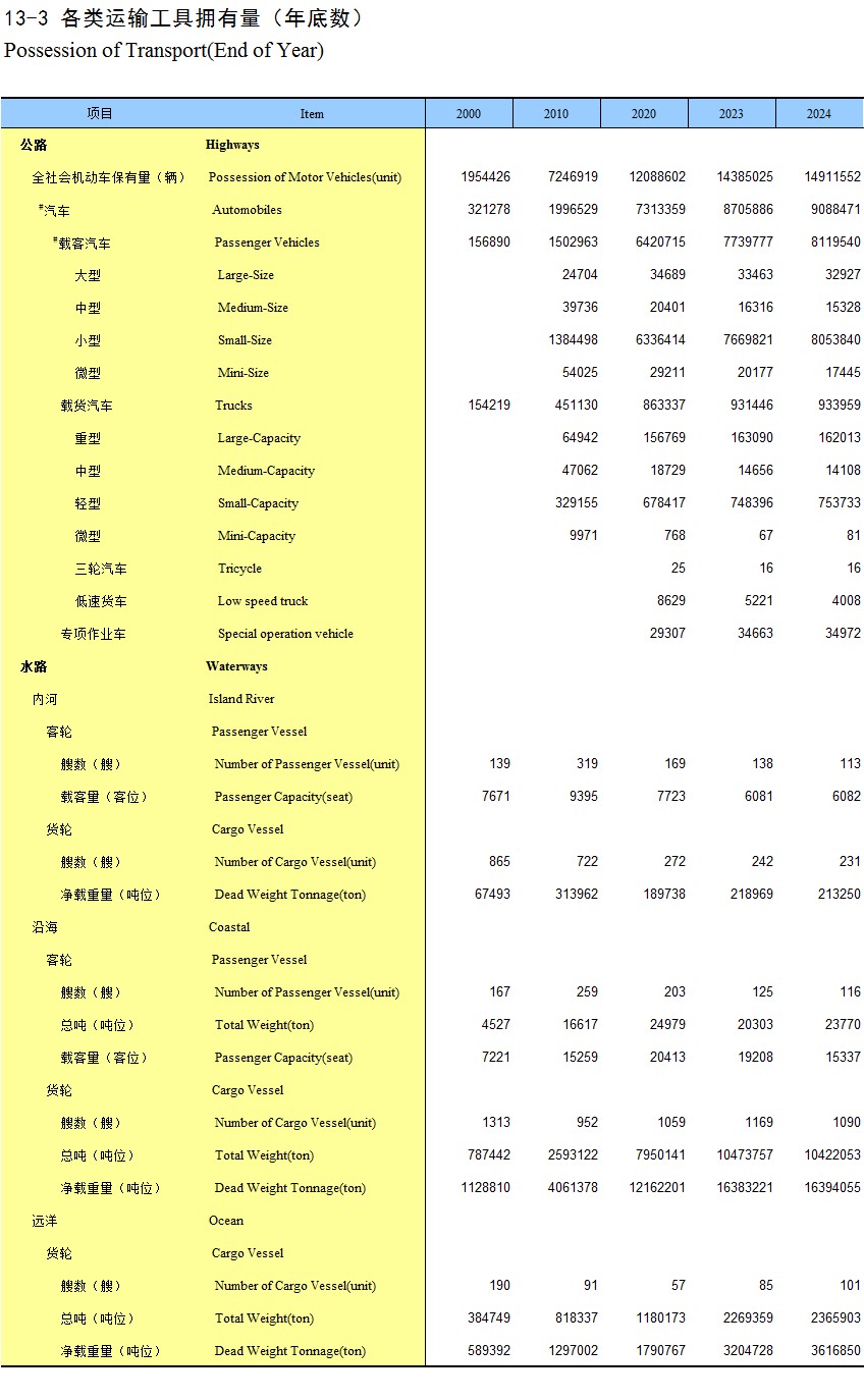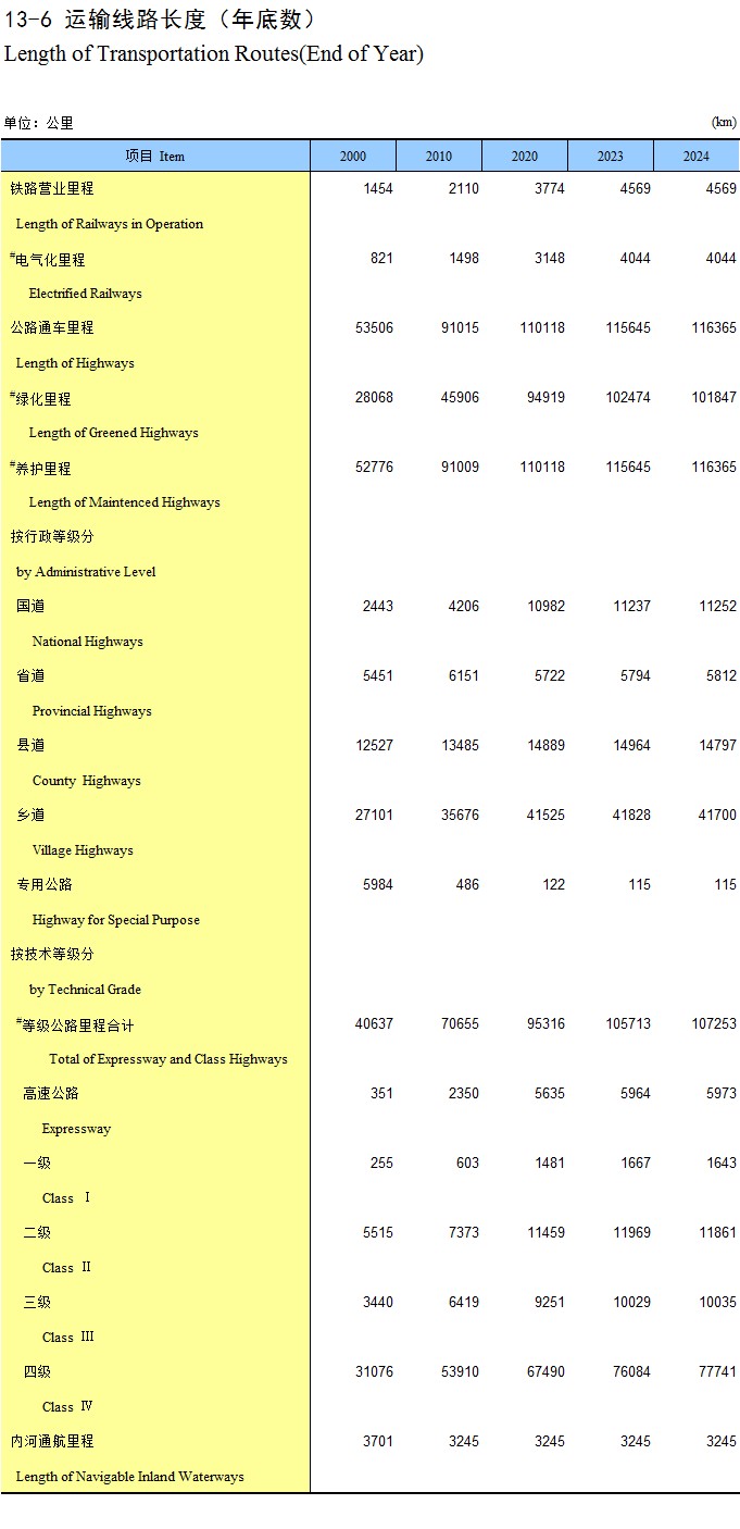 21-13 公路通车里程(2024年)