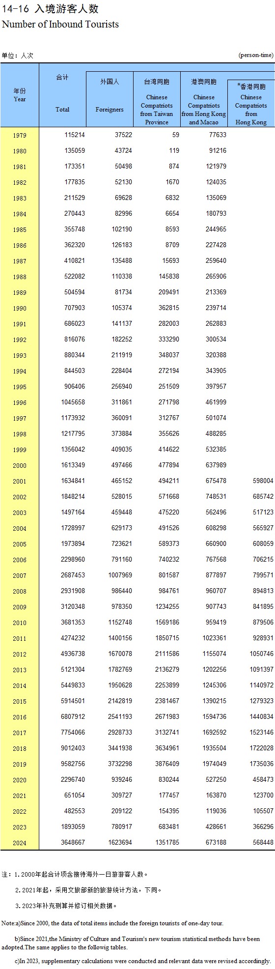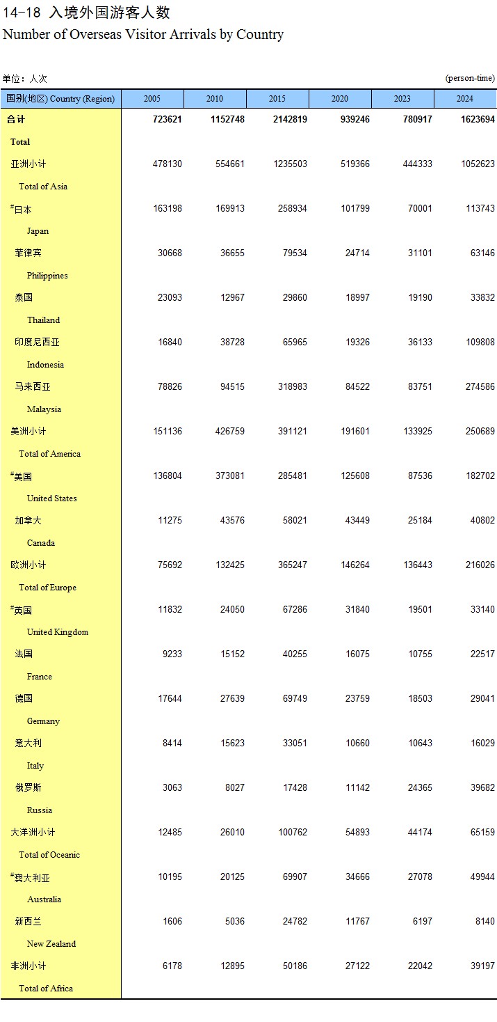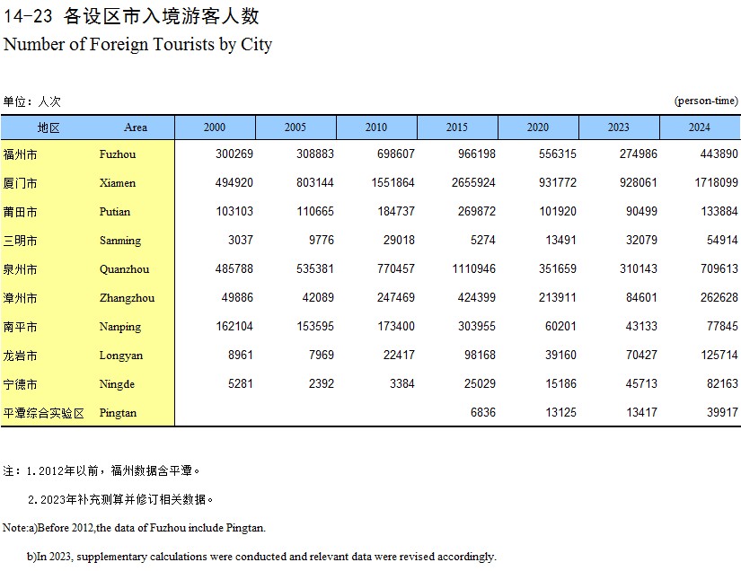14-23 各设区市入境游客人数
