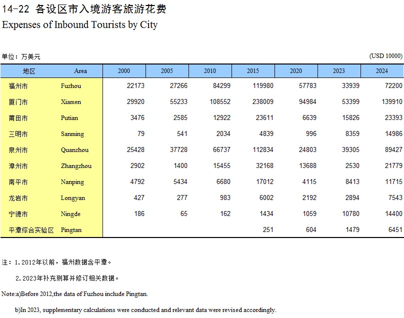 14-22 各设区市入境游客旅游花费