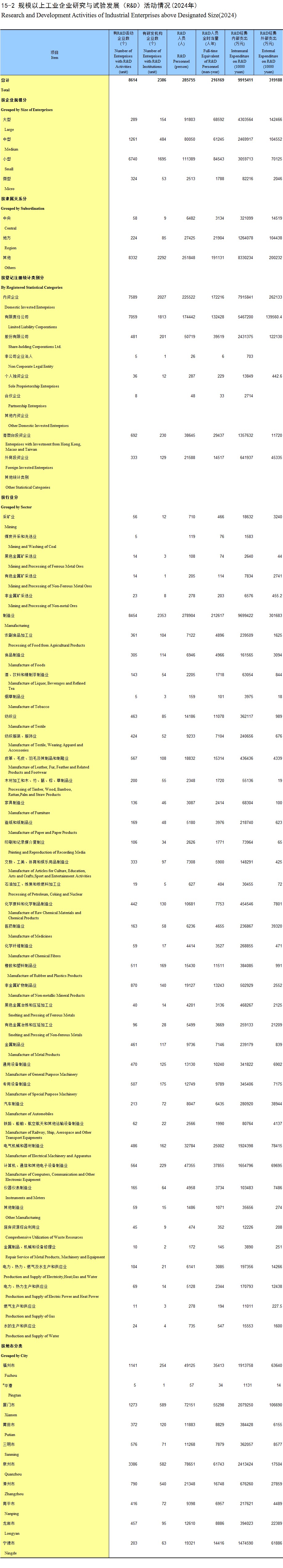15-2 规模以上工业企业研究与试验发展(R&D)活动情况(2024年)