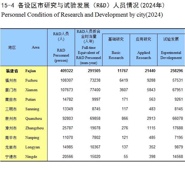15-4 各设区市研究与试验发展(R&D)人员情况(2024年)