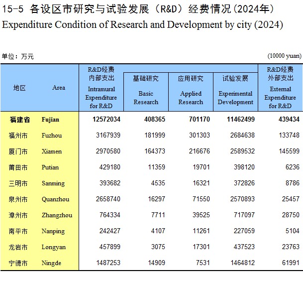15-5 各设区市研究与试验发展(R&D)经费情况(2024年)