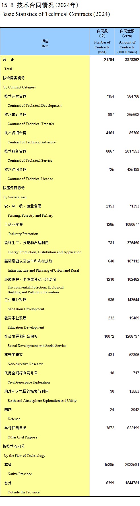 15-8 技术合同情况(2024年)