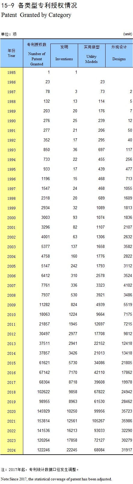 15-9 各类型专利授权情况