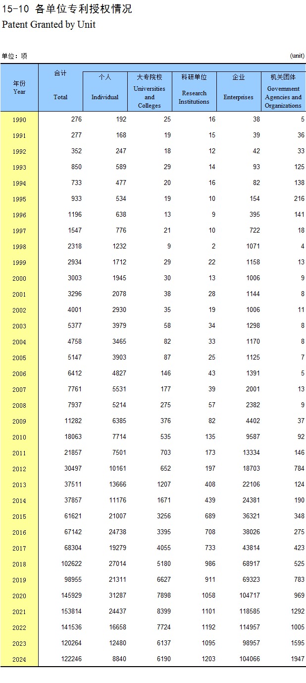 15-10 各单位专利授权情况