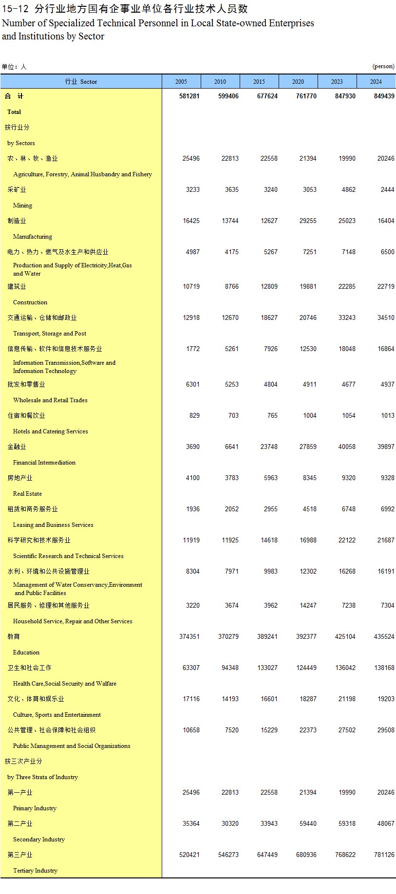15-12 分行业地方国有企事业单位各行业技术人员数