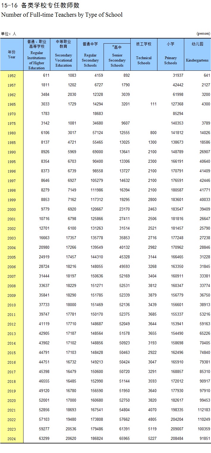 15-16 各类学校专任教师数