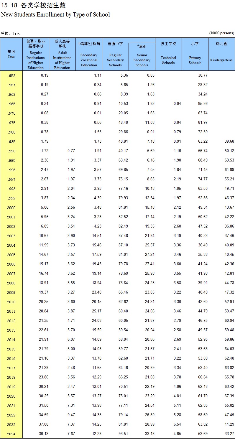 15-18 各类学校招生数