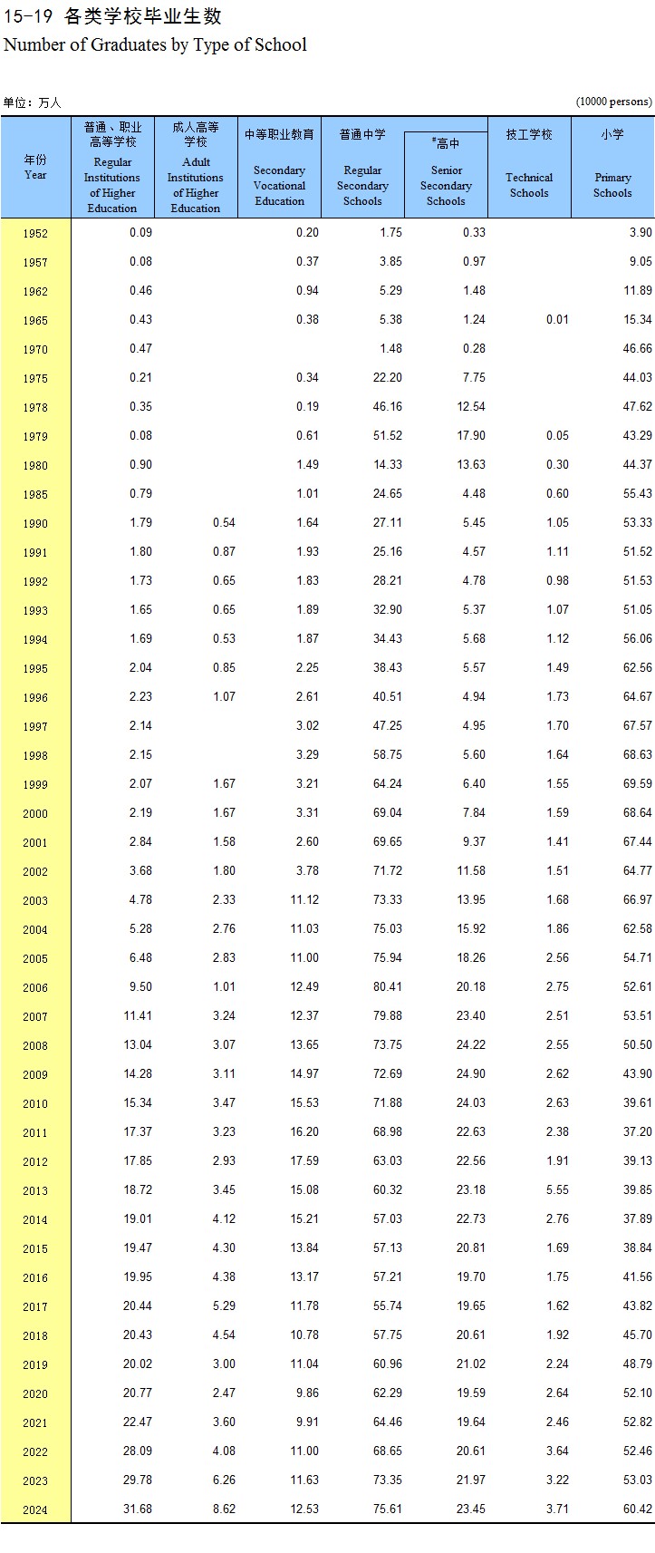 15-19 各类学校毕业生数