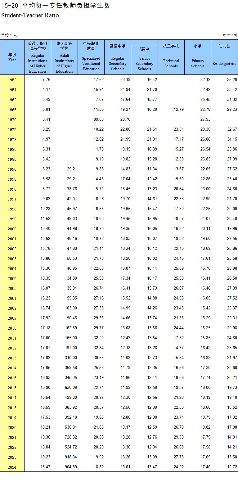 15-20 平均每一专任教师负担学生数