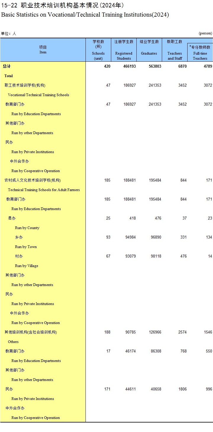 15-22 职业技术培训机构基本情况(2024年)