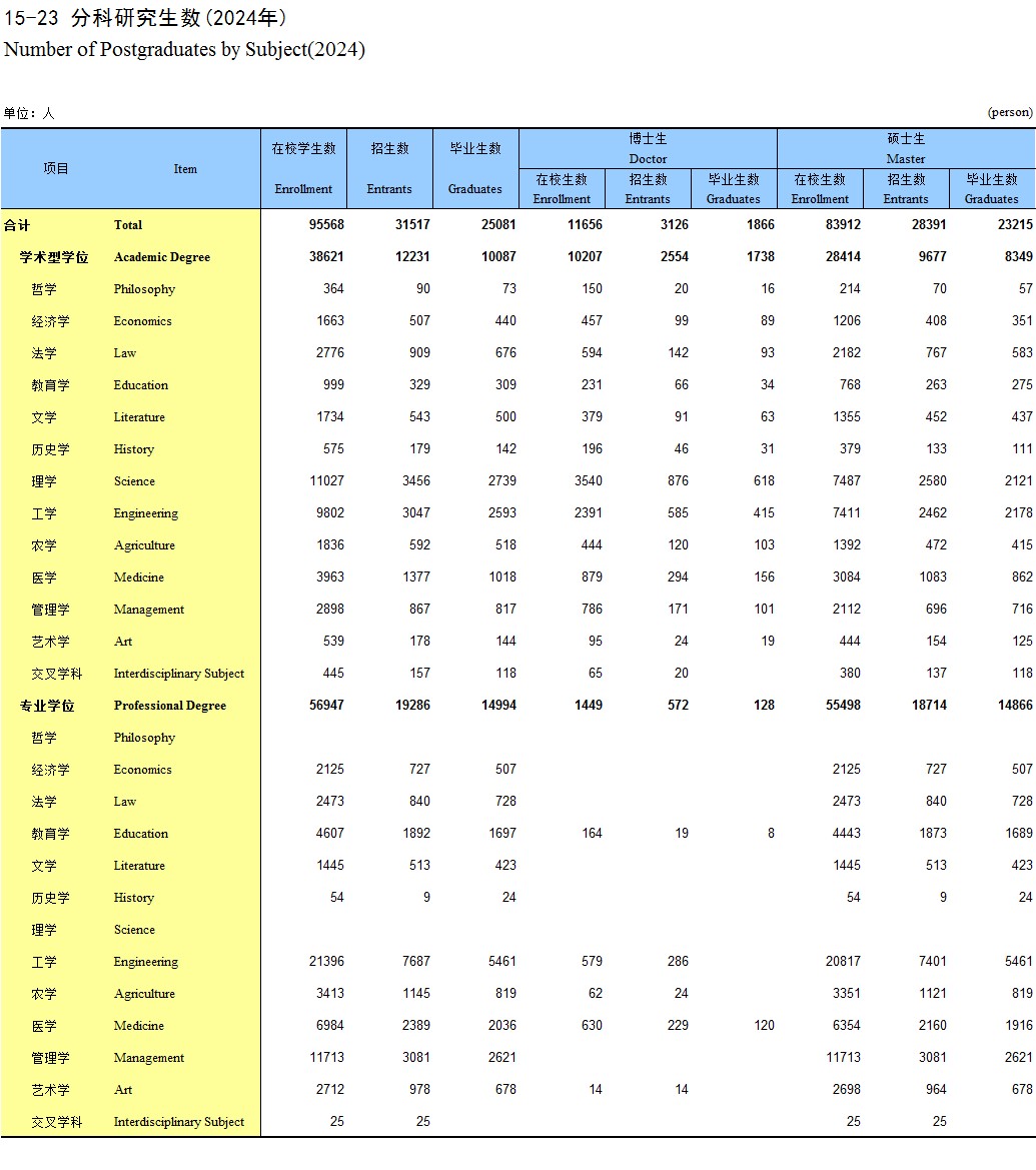 15-23 分科研究生数(2024年)