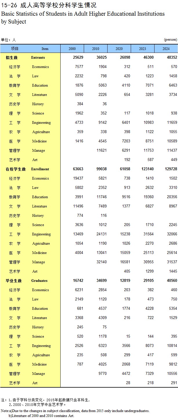15-26 成人高等学校分科学生情况