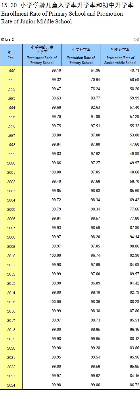 15-30 小学学龄儿童入学率升学率和初中升学率