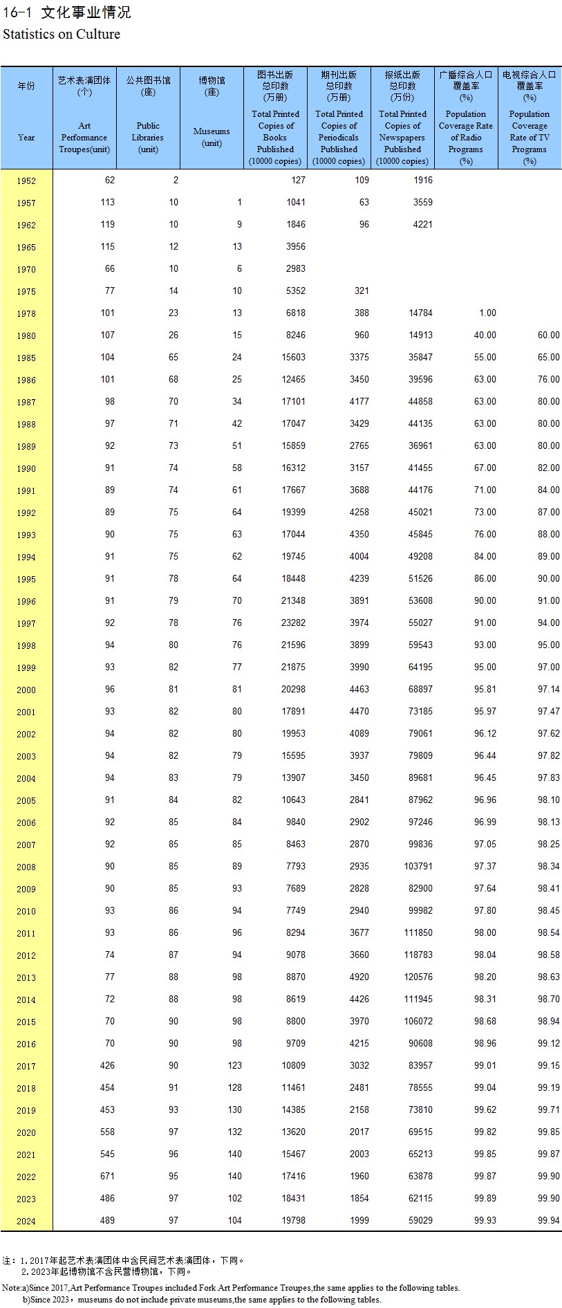 16-1 文化事业情况