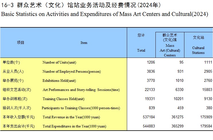 16-3 群众艺术(文化)馆站业务活动及经费情况(2024年)
