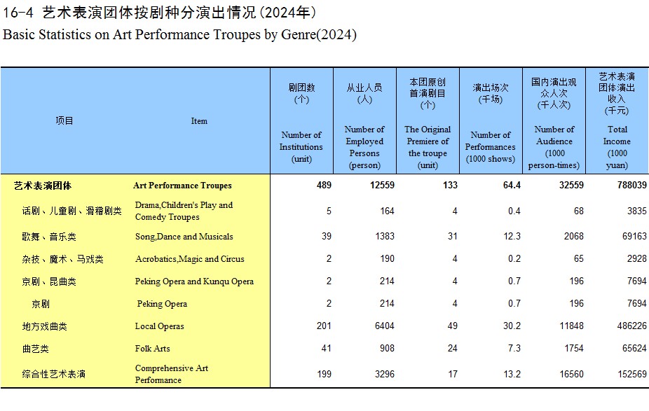 16-4 艺术表演团体按剧种分演出情况(2024年)