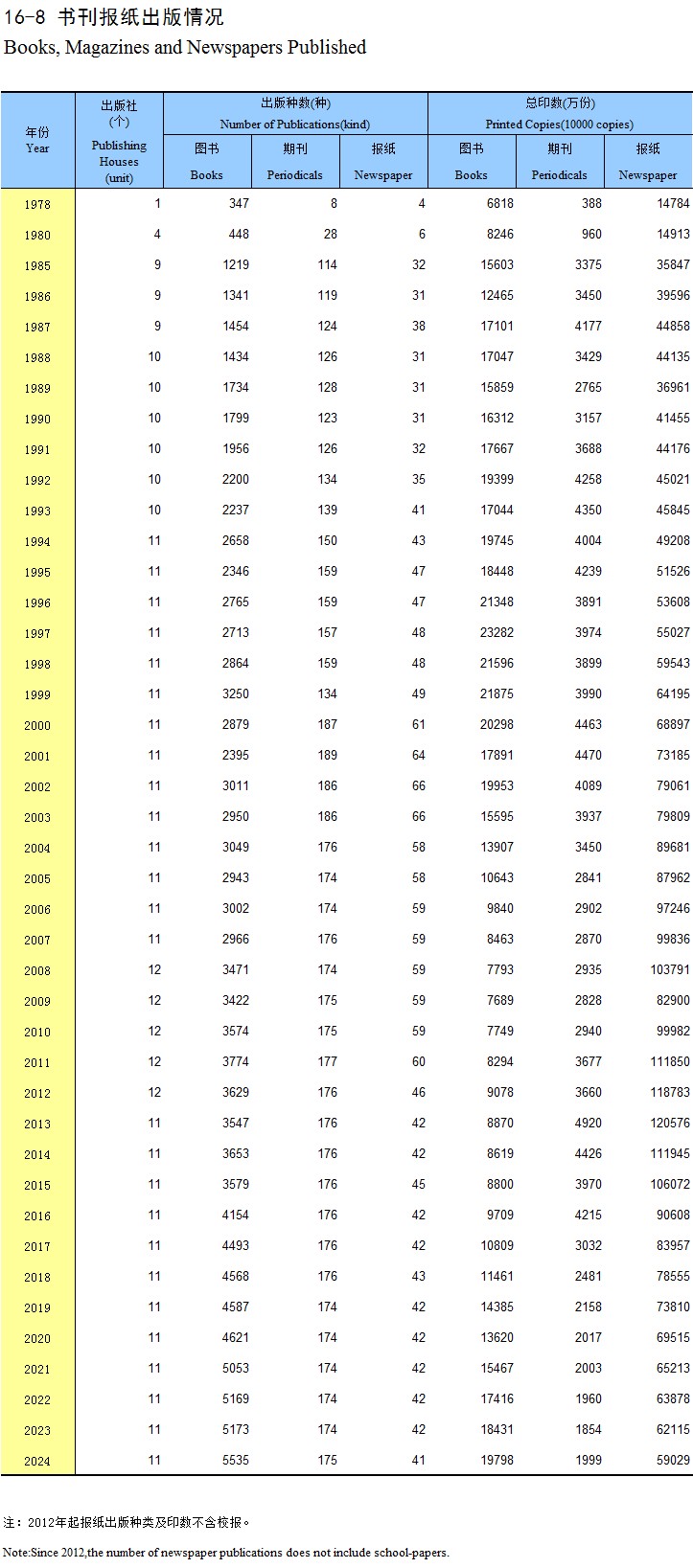 16-8 书刊报纸出版情况