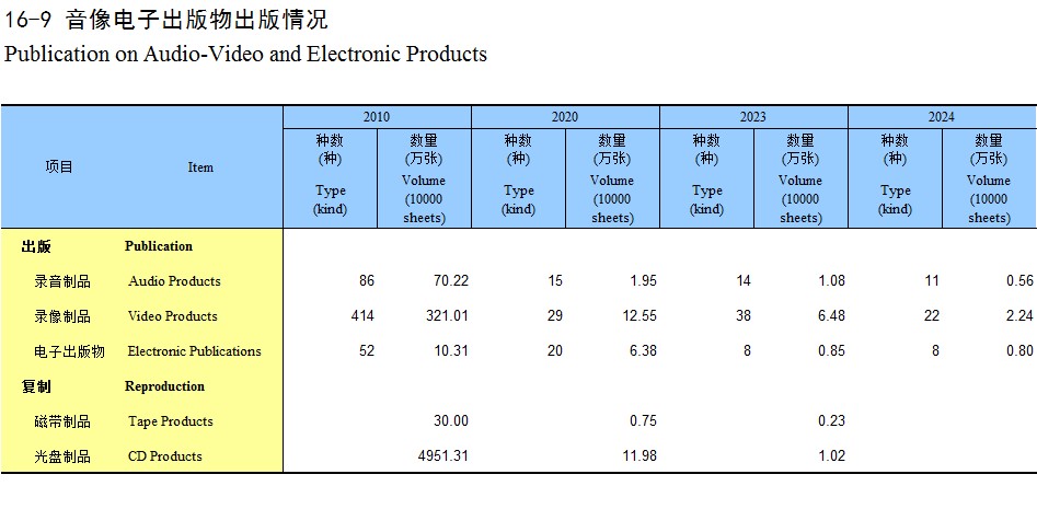 16-9 音像电子出版物出版情况