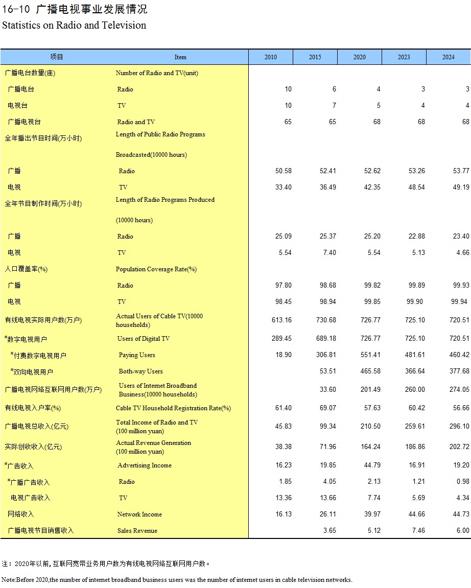 16-10 广播电视事业发展情况