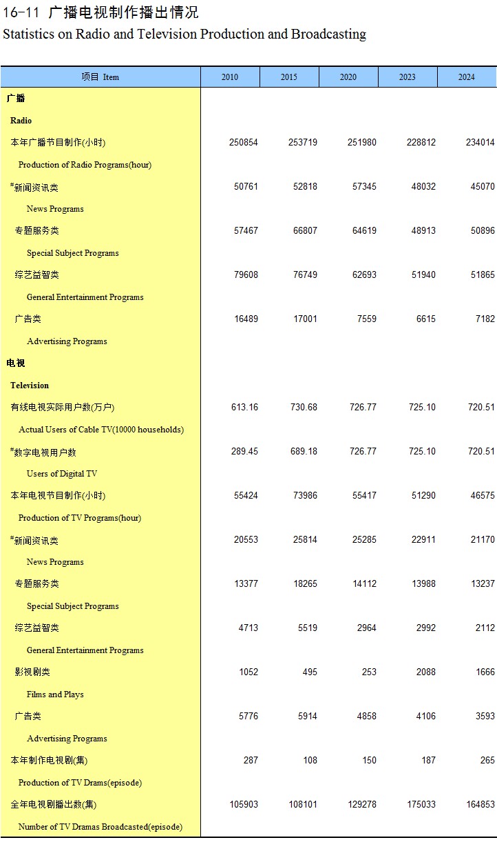 16-11 广播电视制作播出情况