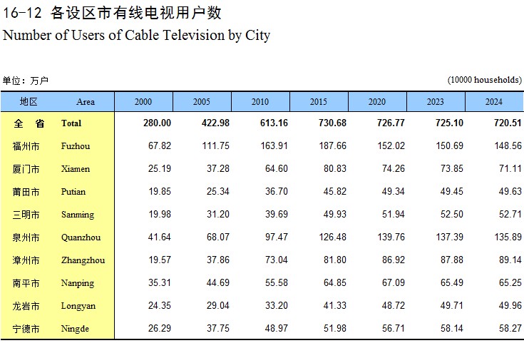 16-12 各设区市有线电视用户数