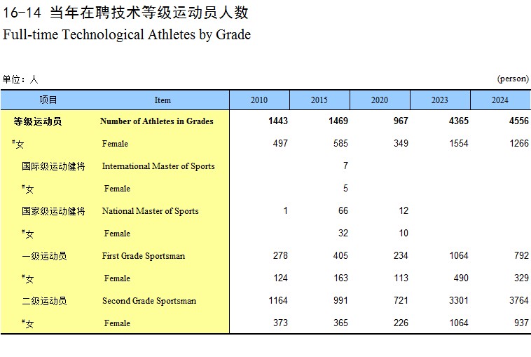 16-14 当年在聘技术等级运动员人数