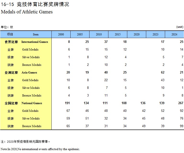 16-15 竞技体育比赛奖牌情况