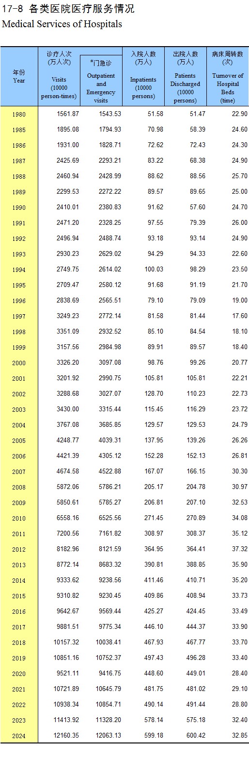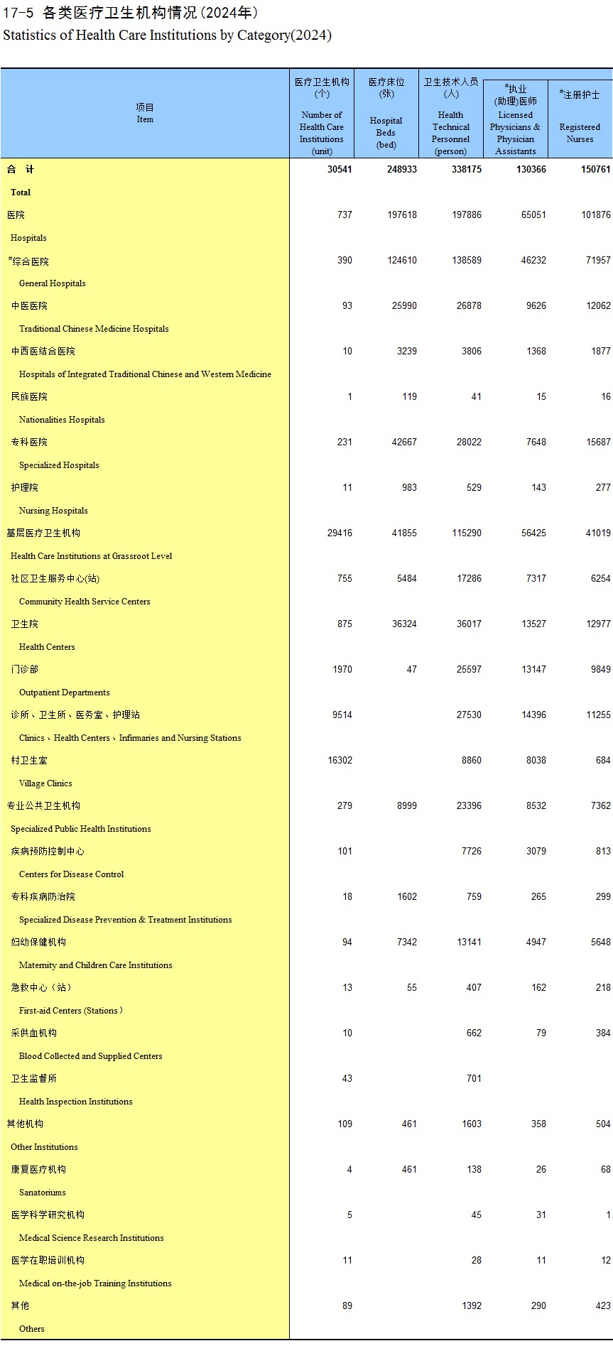 17-5 各类医疗卫生机构情况(2024年)
