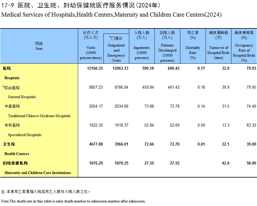 17-9 医院、卫生院、妇幼保健院医疗服务情况(2024年)