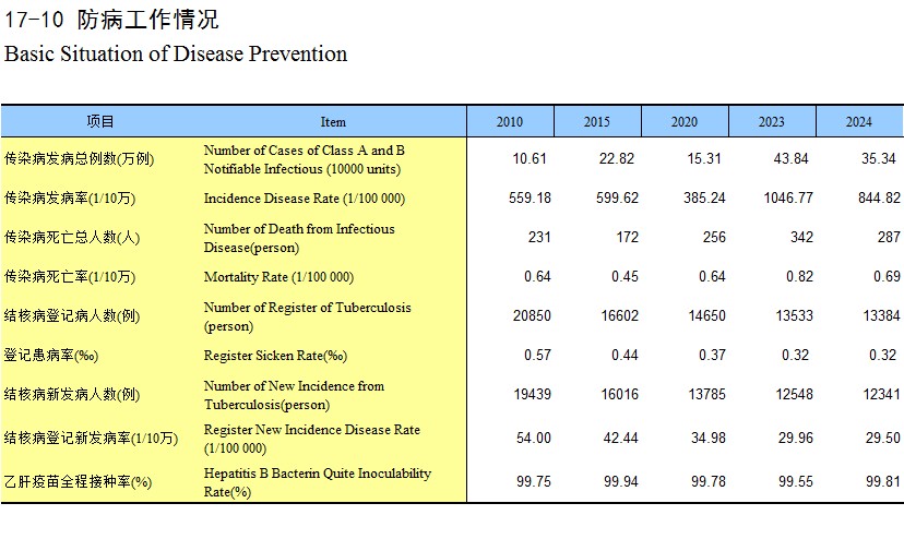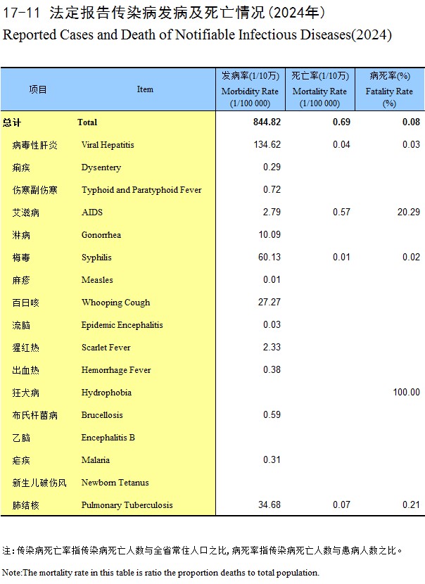 17-11 法定报告传染病发病及死亡情况(2024年)