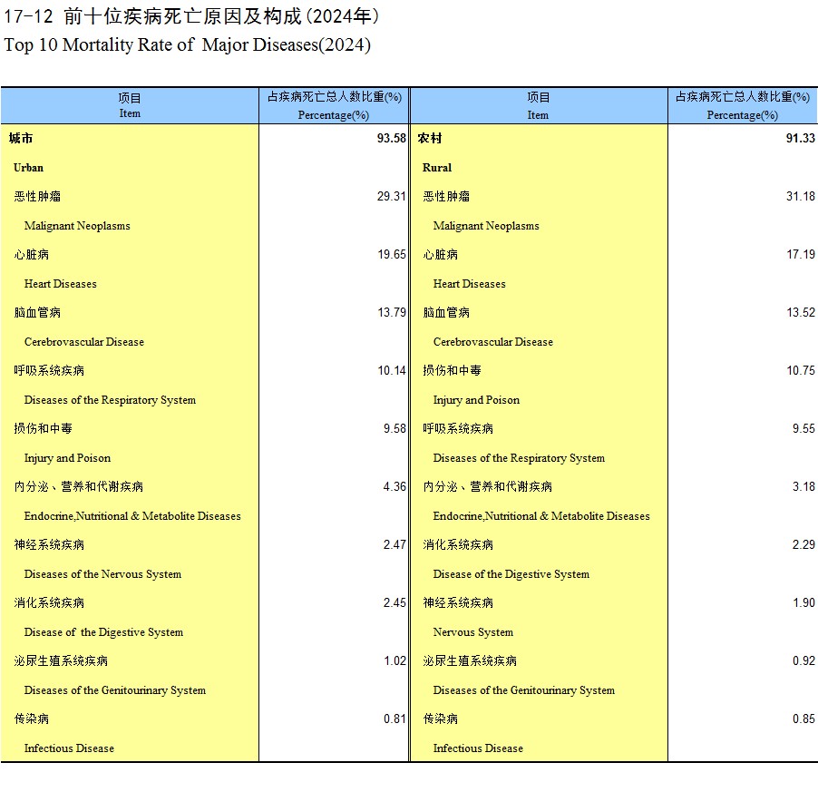 17-12 前十位疾病死亡原因及构成(2024年)