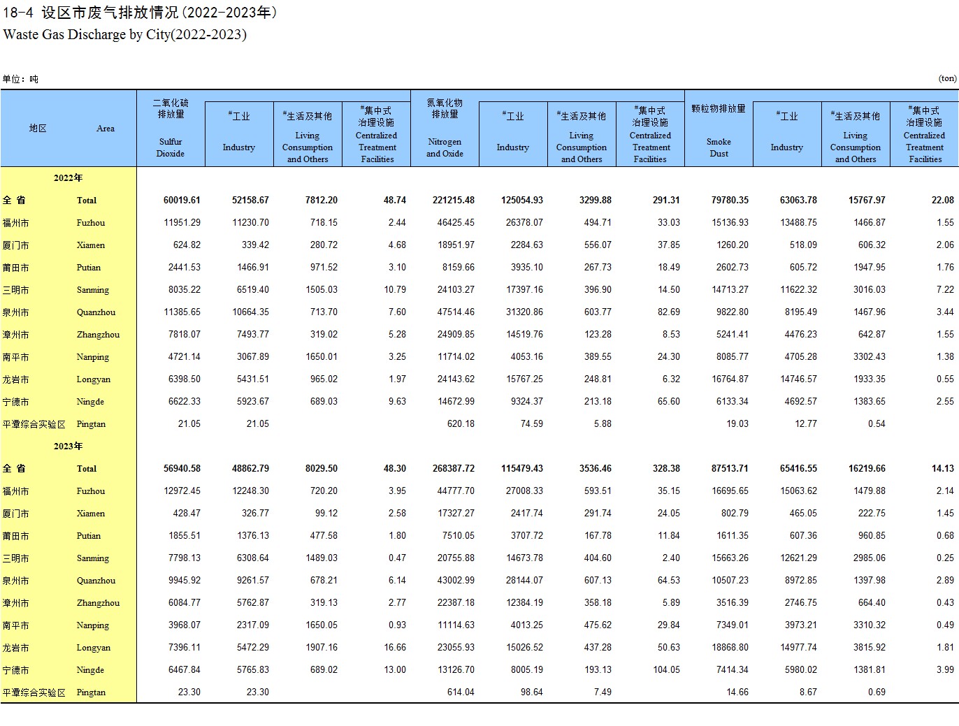 18-4 设区市废气排放情况(2022-2023年)