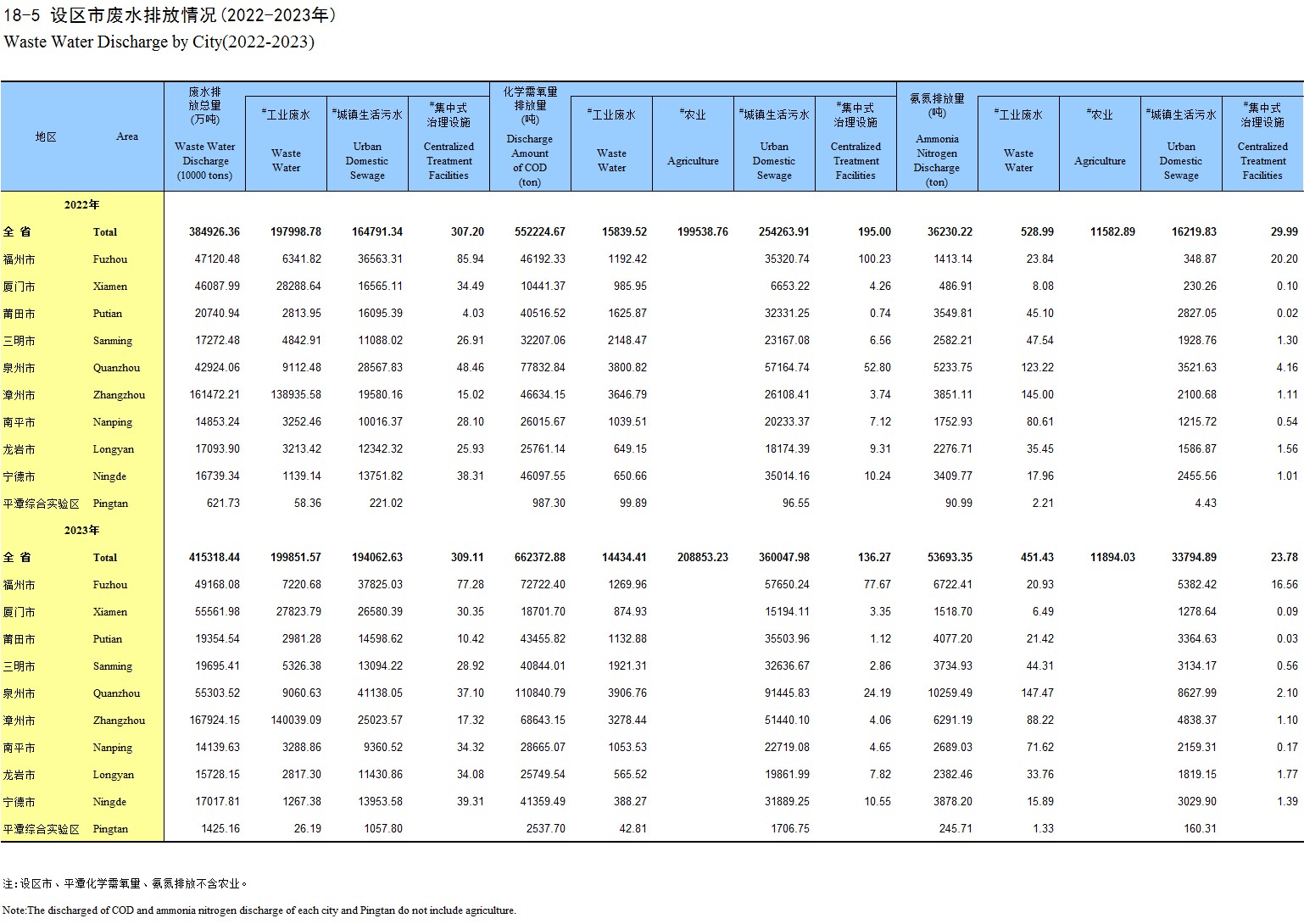 18-5 设区市废水排放情况(2022-2023年)
