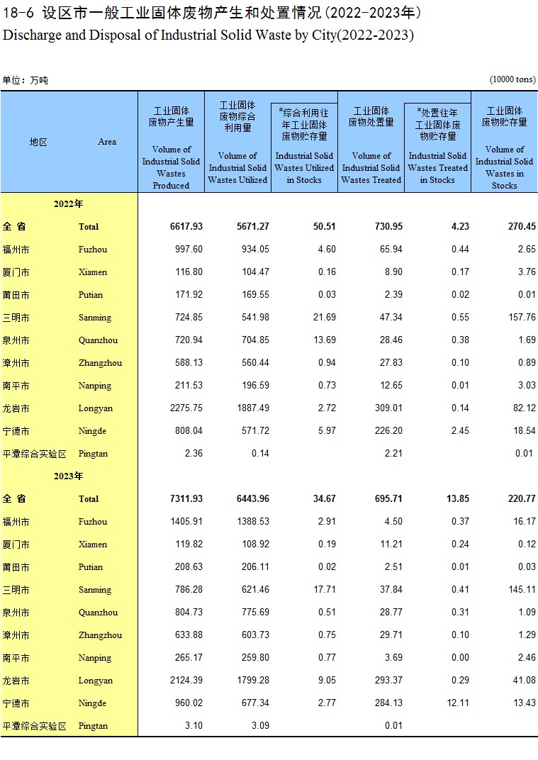 18-6 设区市一般工业固体废物产生和处置情况(2022-2023年)