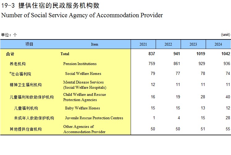 19-3 提供住宿的民政服务机构数