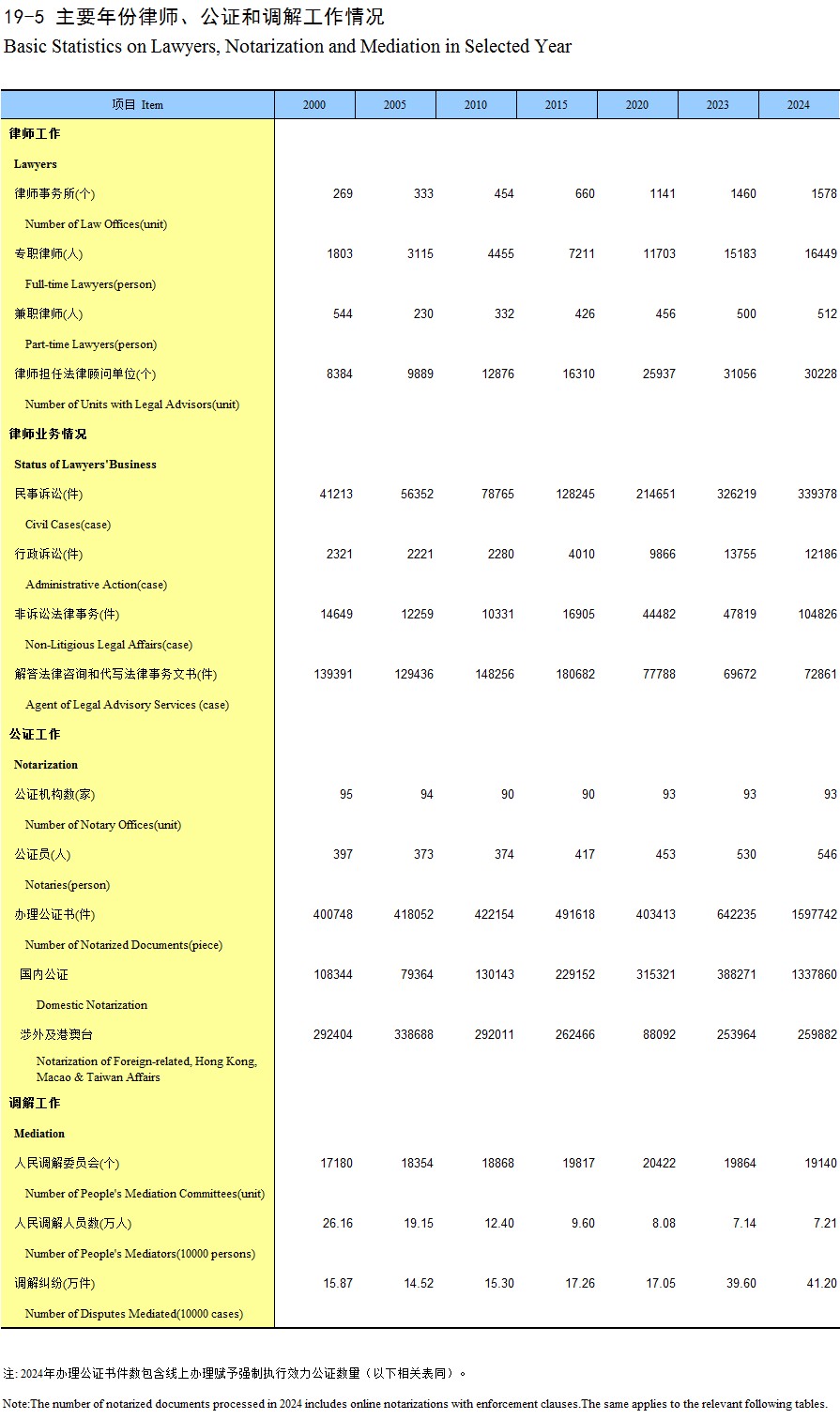 19-5 主要年份律师、公证和调解工作情况