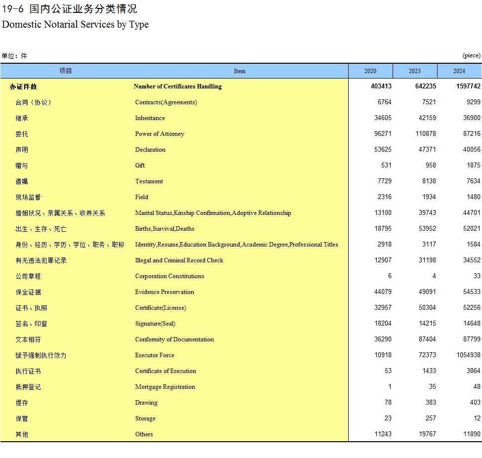 19-6 国内公证业务分类情况