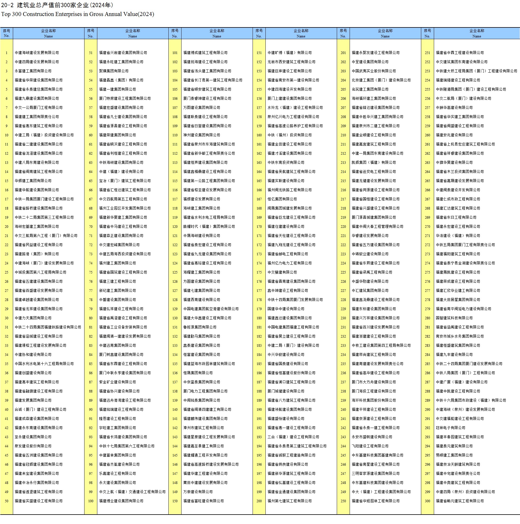 20-2 建筑业总产值前300家企业(2024年)
