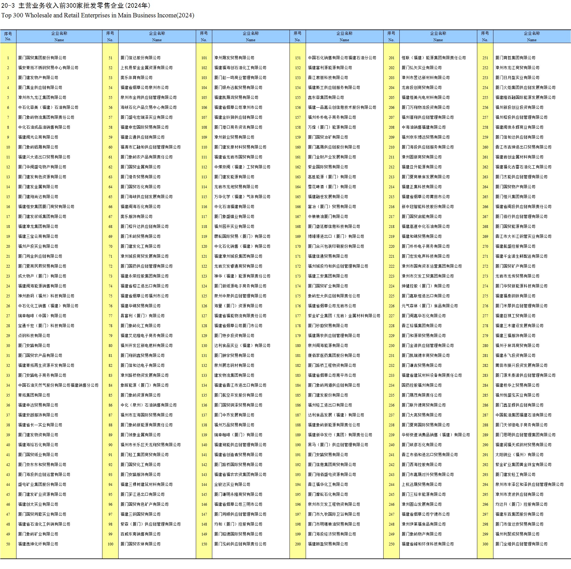 20-3 主营业务收入前300家批发零售企业(2024年)