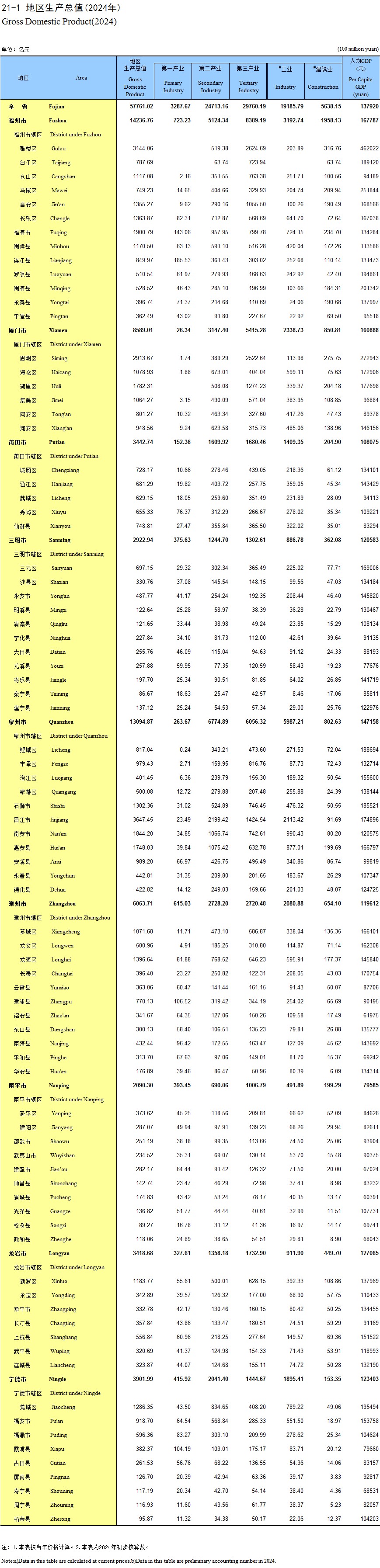 21-1 地区生产总值(2024年)