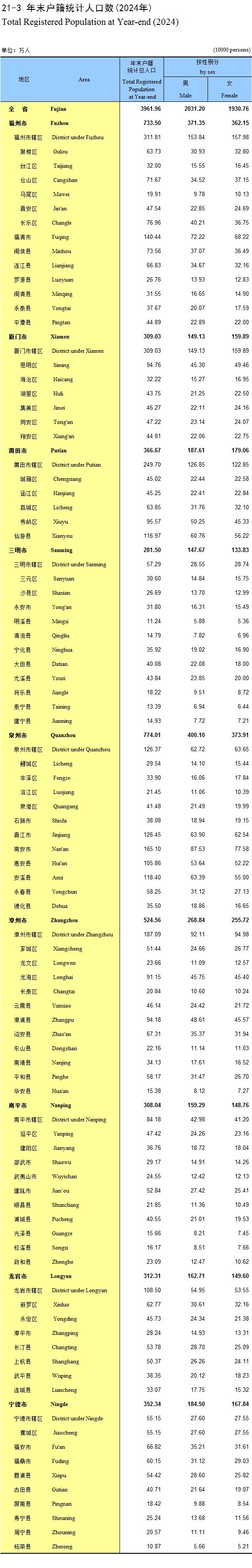 21-3 年末户籍统计人口数(2024年)