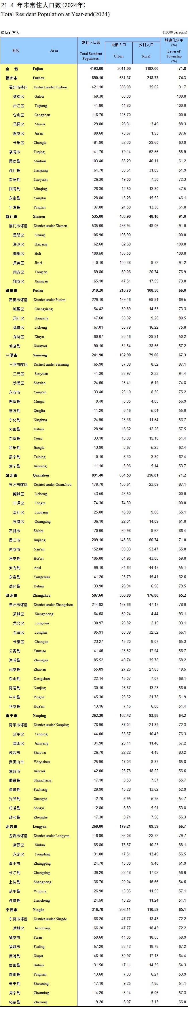 21-4 年末常住人口数(2024年)