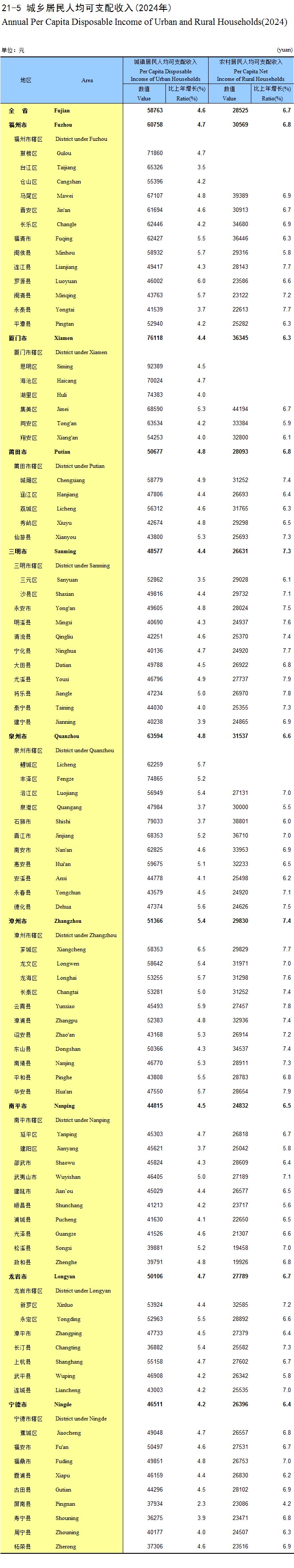 21-5 城乡居民人均可支配收入(2024年)